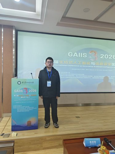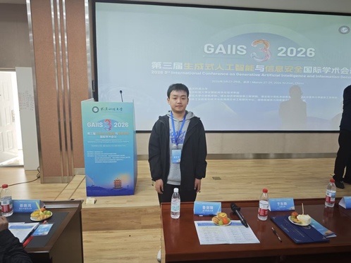 2026年3月27日—29日,数字金融创新湖北省重点实验室研究生徐旺旺、全智浩参加了由武汉科技大学主办的第三届生成式人工智能与信息安全国际学术会议。本次会议围绕生成式人工智能与信息安全领域最新研究成果展开交流,聚焦行业热点与关键技术难题,深入探讨信息安全核心技术与前沿发展方向。
